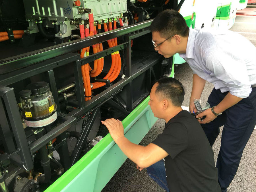 為了提高工作效率,營(yíng)運(yùn)部安排3批人員展開(kāi)工作。一批安排駕駛員開(kāi)車,配合上線工作;一批負(fù)責(zé)車間幫忙,加快工作進(jìn)度;一批負(fù)責(zé)至業(yè)務(wù)大廳核對(duì)合格證和相關(guān)手續(xù)、查看檢查報(bào)告等事宜。待車輛安檢合格后,將車開(kāi)至車管所進(jìn)行車檢工作,最后提供相應(yīng)材料到車管所業(yè)務(wù)大廳辦理上牌相關(guān)手續(xù),然后選牌照,進(jìn)行上牌。經(jīng)過(guò)工作人員連日的加班加點(diǎn),不辭辛勞,預(yù)計(jì)80臺(tái)新車將于6月底全部上線運(yùn)行。