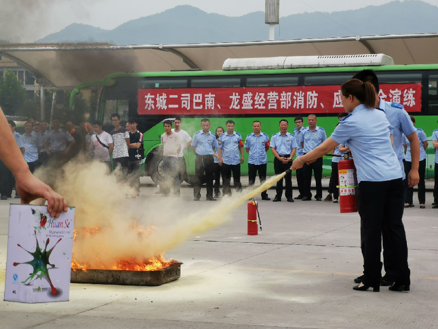 為提高安全防范意識,增強自我保護能力,掌握對突發(fā)火災的應變、自救、逃生技能,切實落實好“安全生產月”的各項活動,6月25日,東城公交組織龍盛經營部和巴南經營部的龍興、水土、姜家接龍、木洞、一品等片區(qū),共計40余人,在我司輕紡城站場開展了消防應急演練。