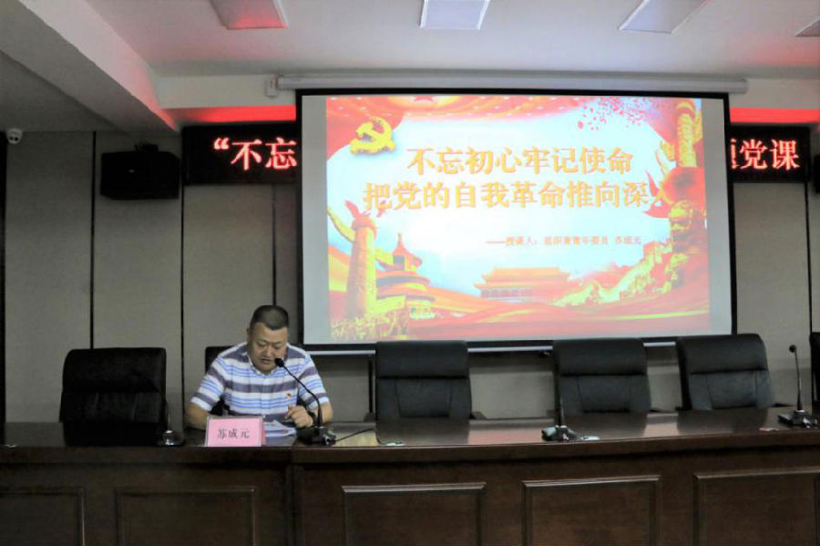 大會(huì)在莊嚴(yán)的國(guó)歌聲中拉開序幕。隨后,由支部書記舒渝同志、宣傳委員胡忠同志、紀(jì)檢委員張衛(wèi)同志、組織兼青年委員蘇成元同志分別以《“不忘初心、牢記使命”主題教育》、《我是黨員我奉獻(xiàn)》、《以案為鑒,警鐘長(zhǎng)鳴》、《把黨的自我革命推向深入》為題,為參會(huì)人員上了一堂內(nèi)容豐富、主題鮮明的黨課。