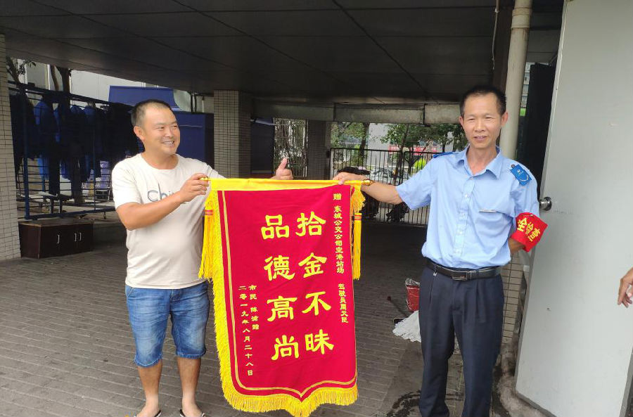 2019年8月28日,一位中年男子來到東城公交空港樞紐站,專程為咱們的公交駕駛員周天明送來了一面印有“拾金不昧品德高尚”的錦旗,表達(dá)自己的感激之情。
