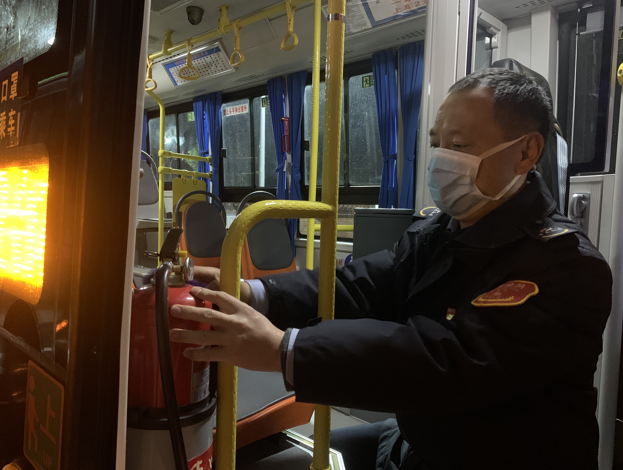 (包旭東師傅正在對第一班車進行出車前的車輛檢查)
