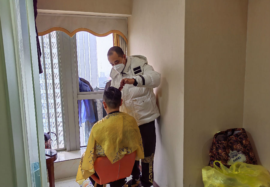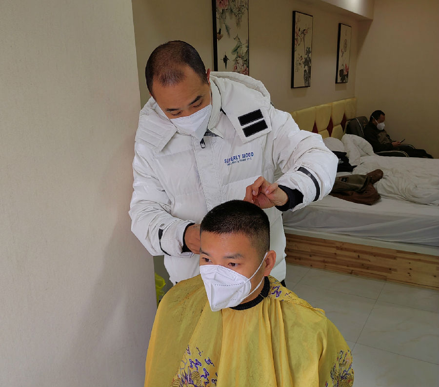 12月3日,李俊專門來到華宇酒店,一把椅子,一條圍裙,一把剃刀,一個(gè)簡單的“理發(fā)店”就“開張”了,工具雖然一切從簡,但“理發(fā)師”認(rèn)真專業(yè)的態(tài)度,卻一點(diǎn)不打折扣。他用嫻熟的手法,認(rèn)真地為每一位醫(yī)護(hù)人員修剪頭發(fā),一人一剪一消毒,嚴(yán)格做好防疫措施。截至目前,李師傅共為17名醫(yī)護(hù)人員免費(fèi)修剪了頭發(fā)。