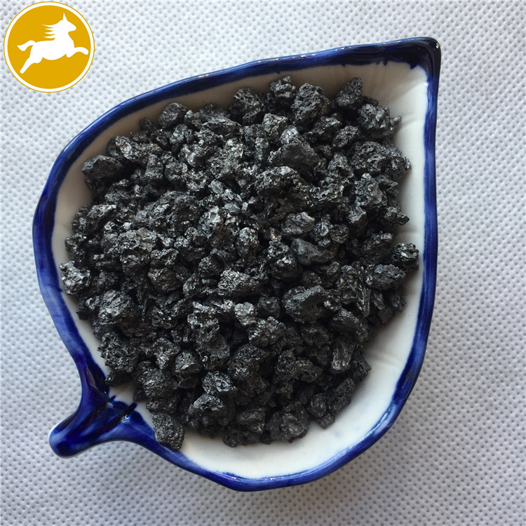 石墨化石油焦在冶煉過程中,由于配料或裝料不當以及脫碳過量等原因,有時造成鋼中碳含量沒有達到頂期的要求,這時要向鋼液中增碳。常用的增碳劑有增碳生鐵、電極粉、石油焦粉、木炭粉和焦炭粉。轉爐冶煉中、高碳鋼種時,使用含雜質很少的石油焦作為增碳劑。對頂吹轉爐煉鋼用增碳劑的要求是固定碳要高,灰分、揮發(fā)分和硫、磷、氮等雜質含量要低,且干燥、干凈、粒度適中。