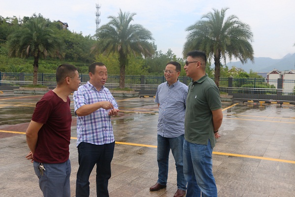 2017年8月29日,北碚區(qū)運管處處長王春、副處長張勇在東城公交董事長舒渝、副總經(jīng)理張衛(wèi)的陪同下,到北碚靜觀公交換乘樞紐站建設(shè)工地視察工作。