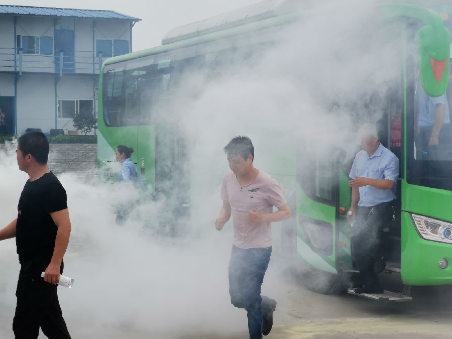 整個演練活動分為消防器材的正確使用和模擬公交車突發(fā)火情緊急逃生兩個部分。在詳細講解發(fā)生火災時人員疏散、火場自救逃生、滅火器的正確使用等消防知識后,演練人員分批進行了“易燃物滅火”的實際操作演習。隨后,演練人員現(xiàn)場模擬演練公交車突發(fā)火情,駕駛員組織乘客應急逃生的實景演習。參演駕駛員按照預定方案,完成演習的全部演習任務。