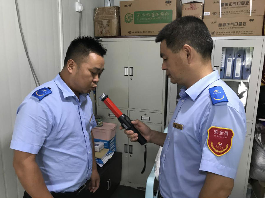 (安全員對(duì)每日行車駕駛員進(jìn)行酒精測(cè)試)